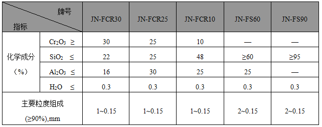 ·JN系列鋼包引流砂主要理化指標·